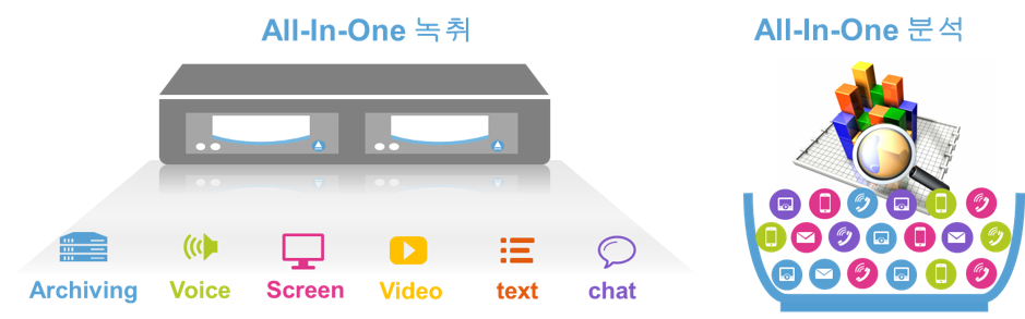 NICE Engage 플랫폼은 음성, 영상, 스크린, 이메일, 채팅 등 모든 인터랙션을 한 서버에서 레코딩하고 아카이빙 할 수 있는 올인원 플랫폼을 추구 합니다. 따라서 기존에 컨택 센터들이 각 채널 별로 별도의 분배 로직(라우팅 솔루션)을 운영한다 하더라도 상담원에게 분배되면 Engage 플랫폼에서 모든 것을 기록 및 보관 할 수 있습니다.